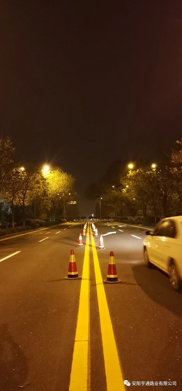 此次標(biāo)線施工,為不影響市政公路通行,均在夜間車流量較少的時(shí)候進(jìn)行施工,在施工安全第 一的前提下,亨通的同事們保質(zhì)保量的用高 效率完成了標(biāo)線試驗(yàn)段施工,該試驗(yàn)段被項(xiàng)目部評(píng)為施工模范。